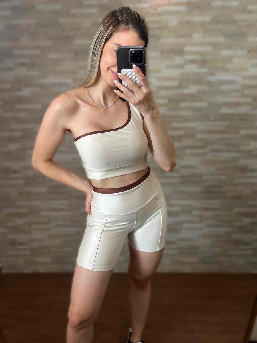 Conjunto Short Off White e Chocolate